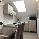 - ❓Is there a kitchen available at Ucka apartment for guest use?Yes, Ucka apartment is equipped with a fully equipped kitchen and offers a microwave oven and a toaster as well.